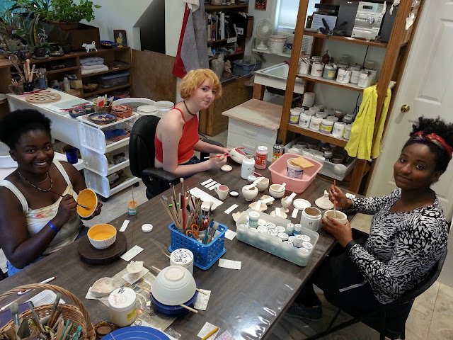 These polite and thoughtful youngsters have continued to come once a month to spend a day making pottery ever since June 2016. They are now all in college or working. They say they will continue to come for classes for the rest of my life. :)